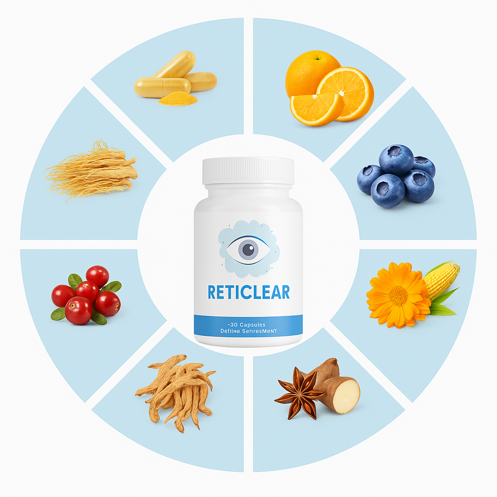 Reticlear is formulated with a powerful blend of vitamins, minerals, and plant-based antioxidants designed to protect vision, strengthen the retina, and support overall eye function. Its carefully selected ingredients help reduce oxidative stress, improve blood flow to the eyes, and naturally support clearer, sharper vision.